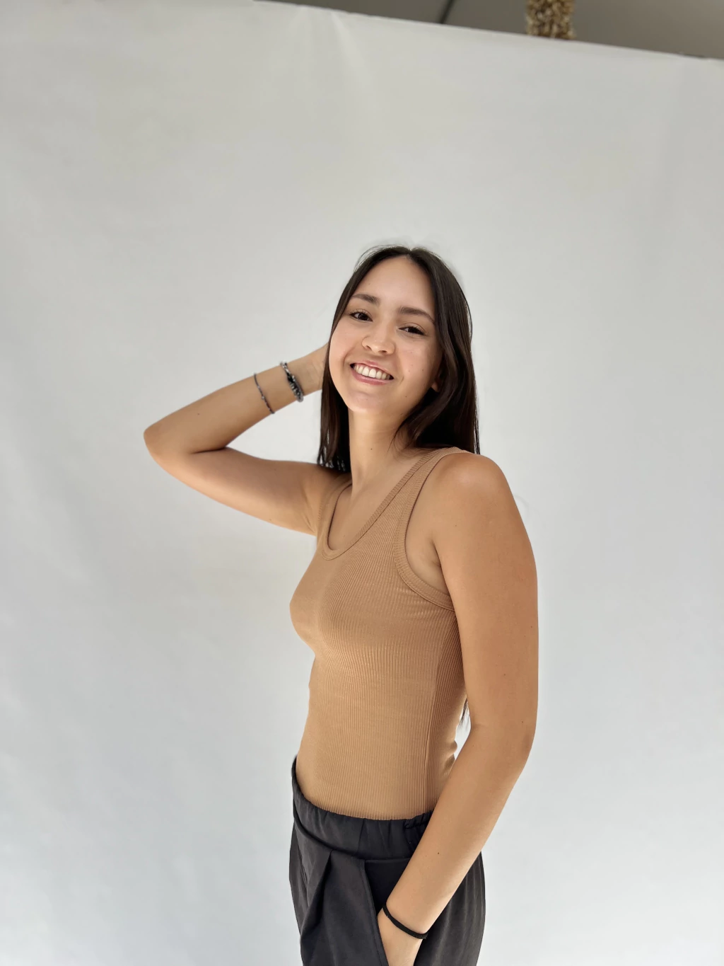 La musculosa Azalea es una musculosa confeccinada en una suave mezcla de modal y viscosa. Su corte es al cuerpo ideal para combinar con la pollera primavera o pantalon traful.