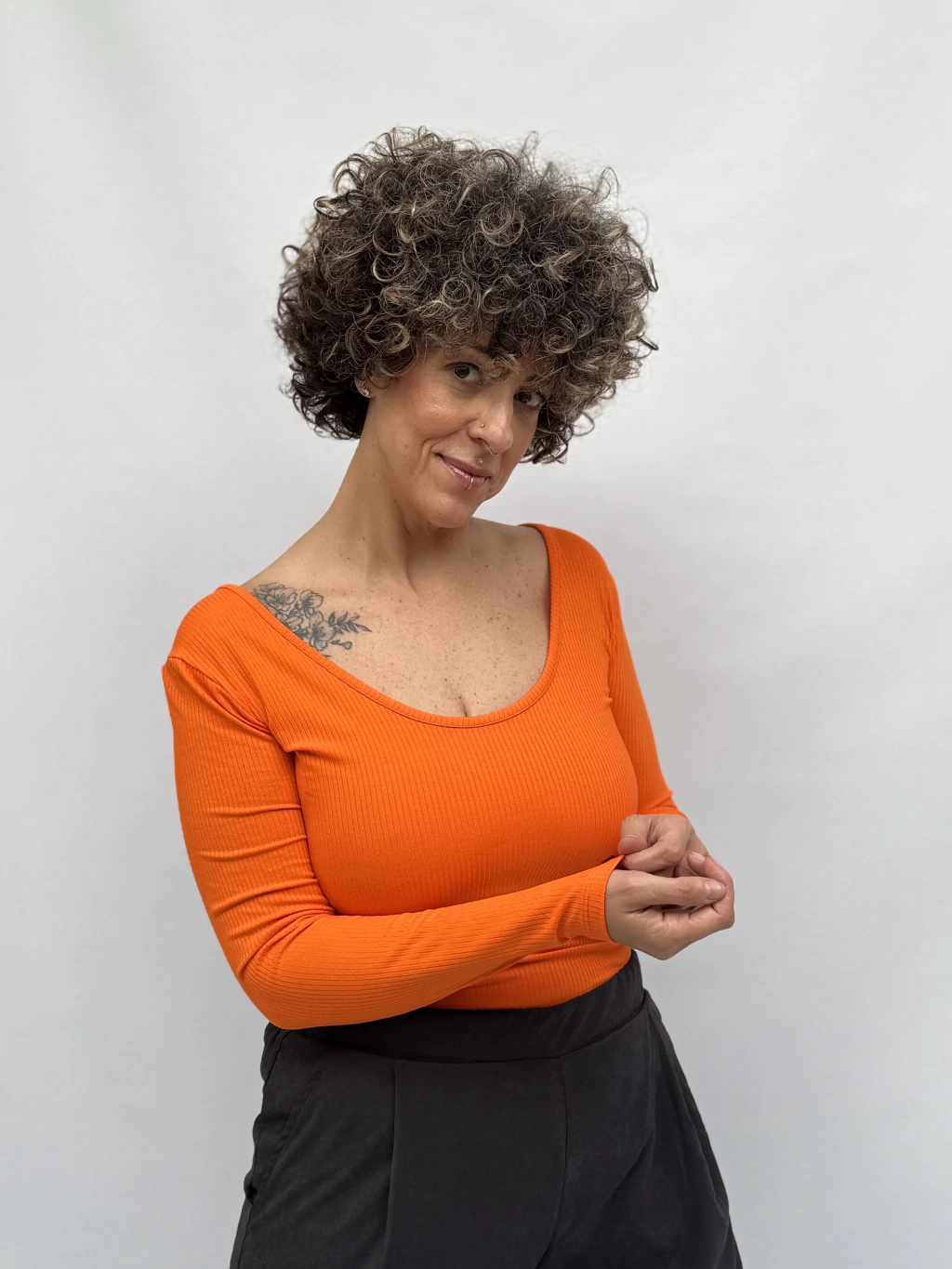 La modelo esta usando talle L